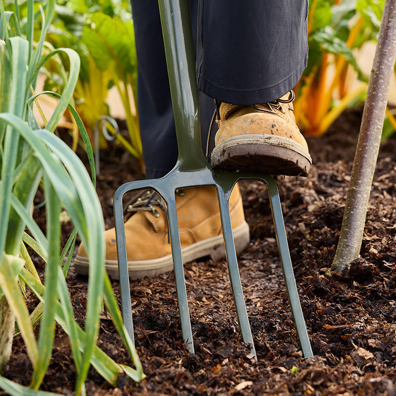 Deze spitvork is getest op een belasting van 100 kg, dat is ver boven de BS3388 Britse norm van 55 kg. Het staal is voor 80% afkomstig uit gerecyclede bronnen, wat naar verluidt een primeur is voor tuingereedschap in het Verenigd Koninkrijk.