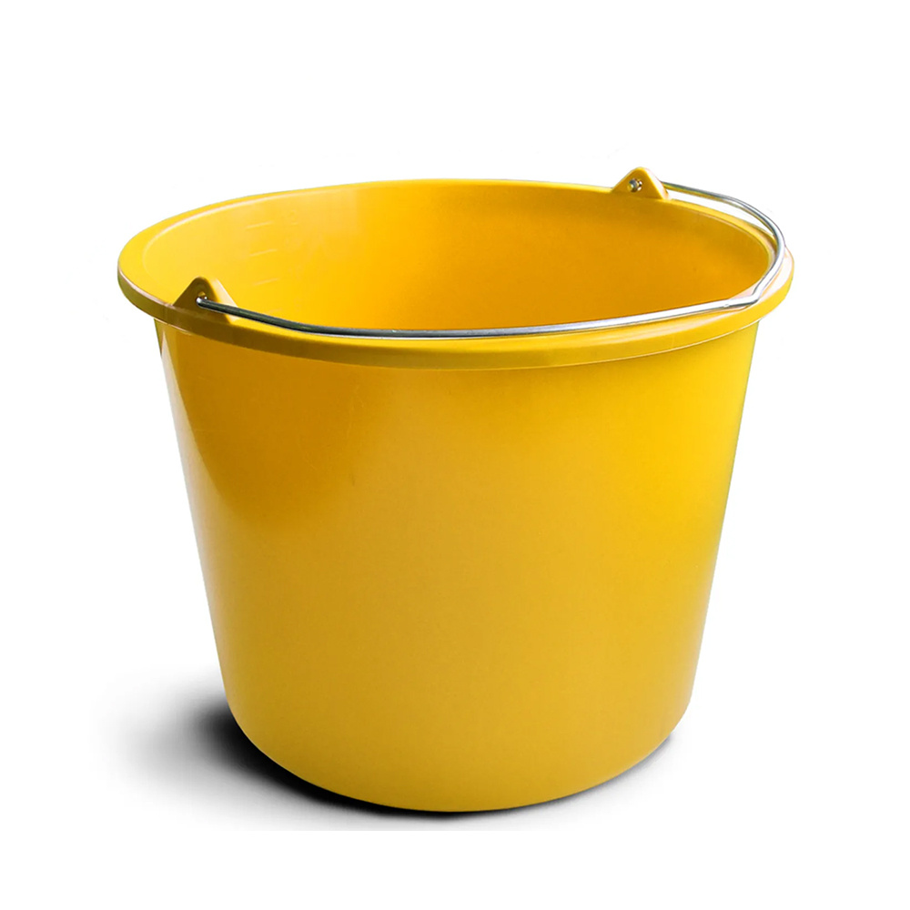 Standaard gele emmer te gebruiken in de tuin of binnen in huis. Deze emmer heeft een inhoud van 12 liter en is voorzien van een handvat. Deze emmer is gemaakt van kunststof en ideaal om bijvoorbeeld zand of grond te vervoeren.