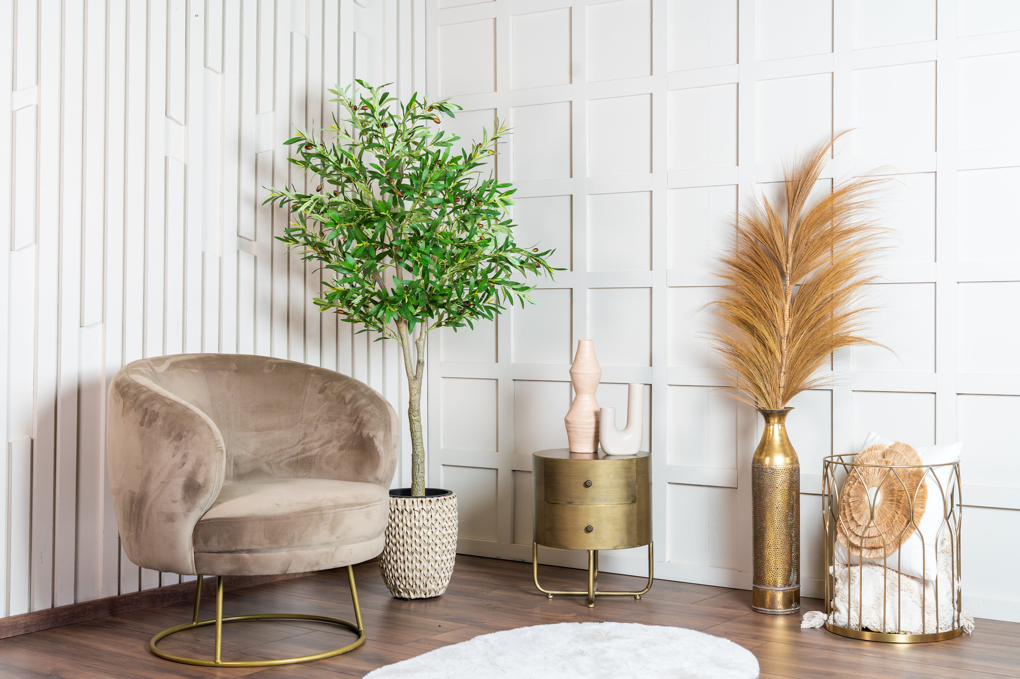 Wil je jouw interieur een vleugje mediterrane sfeer geven? Deze kunst-olijfboom van 160 cm biedt een prachtige oplossing. De boom is zorgvuldig ontworpen met aandacht voor botanische details, zoals de smalle olijfvormige bladeren, subtiele nerven en natuurlijke vertakkingen, wat zorgt voor een levendige en realistische uitstraling. Ook de stam en takken zijn natuurgetrouw vormgegeven.