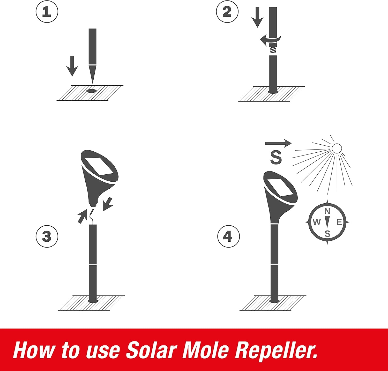Onder ideale omstandigheden is deze solar mollenverdrijver een effectieve oplossing tegen mollen en woelmuizen, zonder dodelijke vallen of gif. De prestaties zijn het best in stevige, vaste grond waar geluidsgolven en trillingen zich goed kunnen verspreiden. Losse, doorweekte of bevroren aarde vermindert de werking. Let op: bij mollen met gehoorproblemen kan het effect beperkt zijn.