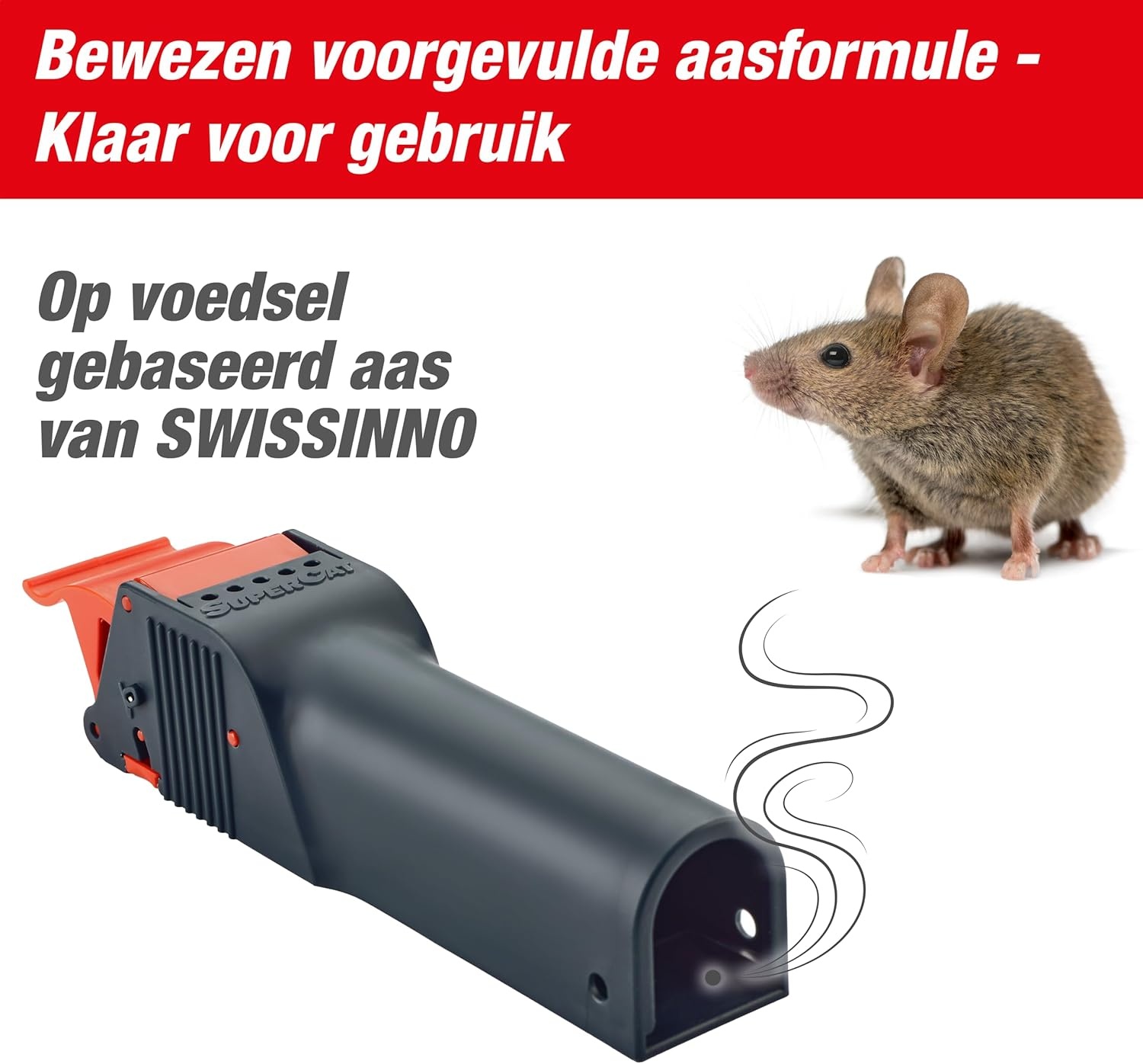 Vang muizen discreet en veilig met de No See No Touch muizenval van Swissinno. Deze No See No Touch muizenval vangt muizen op een hygiënische en veilige manier. Het gepatenteerde systeem van No See No Touch muizenval zorgt ervoor dat er niets te zien is van het vangresultaat en dat ook de muis niet aangeraakt hoeft te worden bij verwijdering. De muis kruipt helemaal in de val voordat deze af gaat. Daarna is met 1 handbeweging de muis onzichtbaar te verwijderen.