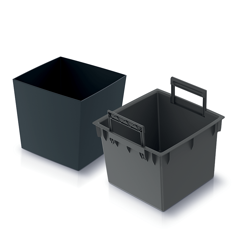 - Model DURS240L-S433: 240 mm lengte, 240 mm diepte, 235 mm hoogte, 10 liter volume, 7,5 liter inzet