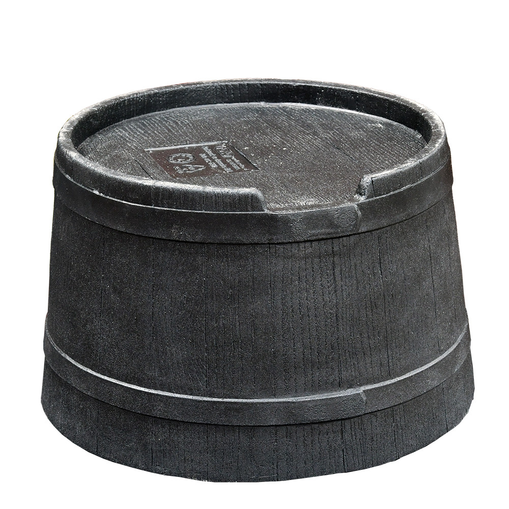 De Roto regenton voet voor de 50 liter regenton in de kleur zwart. Deze regenton voet zorgt dat uw regenton verhoogt kan worden en dat er een gieter onder de regenton kan worden geplaatst. De Roto 50 liter voet zwart heeft dezelfde houtlook uitstraling als de regenton zelf. De rand die aan de bovenkant uitsteekt geeft de regenton geen mogelijkheid om te verschuiven tijdens harde wind of een storm.