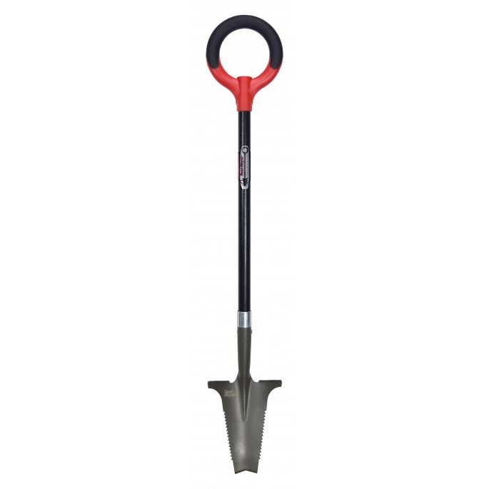 De Root Slayer is een unieke tuinschep met scherpe messcherpte voor extra kracht. Met een multifunctionele kleine kop die ideaal is voor precisiewerk, kunt u graven, zagen, ontwortelen, verplaatsen en planten. De 360° handgreep zorgt voor extra grip en gemakkelijk gebruik. Met een totale lengte van 110 cm en een blad van 22 cm biedt deze speciale massieve versie van de Root Slayer alle functies van zijn grote broer, maar in een compactere vorm voor preciezer werk in bloembedden en kleine ruimtes.