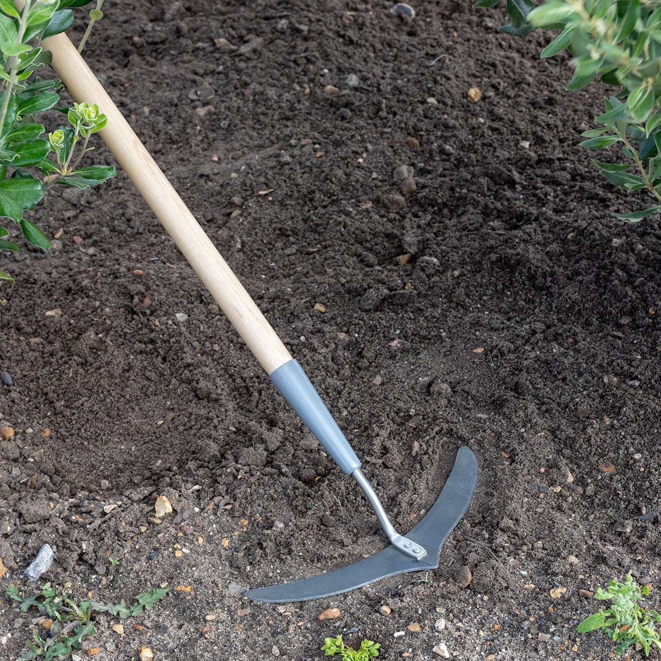De weerbestendige kop is gemaakt van gehard en getemperd koolstofstaal, dat bekend staat om zijn langdurige scherpte en enorme sterkte. Daarbij voorkomt de lange, gepolijste FSC®-gecertificeerde houten steel dat je hoeft te bukken. Je rug zal je dankbaar zijn!