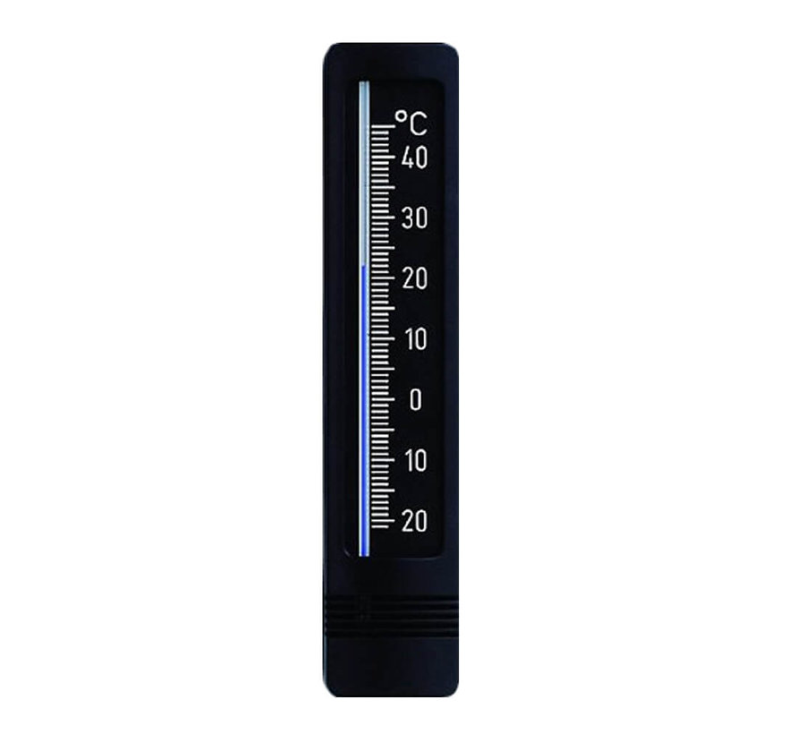 Deze thermometer is een analoge thermometer van 22 cm. Deze thermometer is geschikt voor binnen en buitengebruik. De cijfers worden getoond in het zilver en de blauwe vloeistof geeft de temperatuur aan.