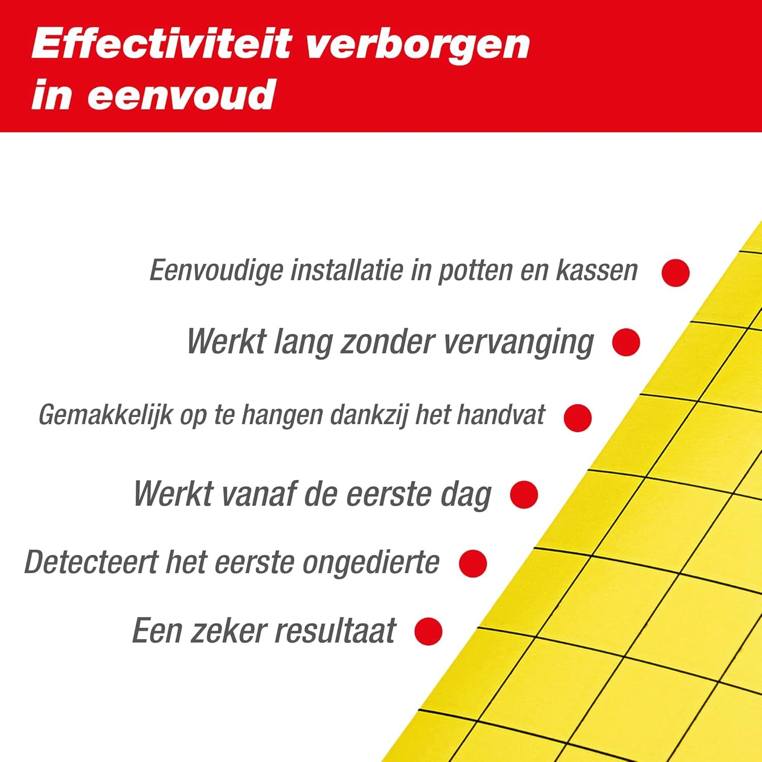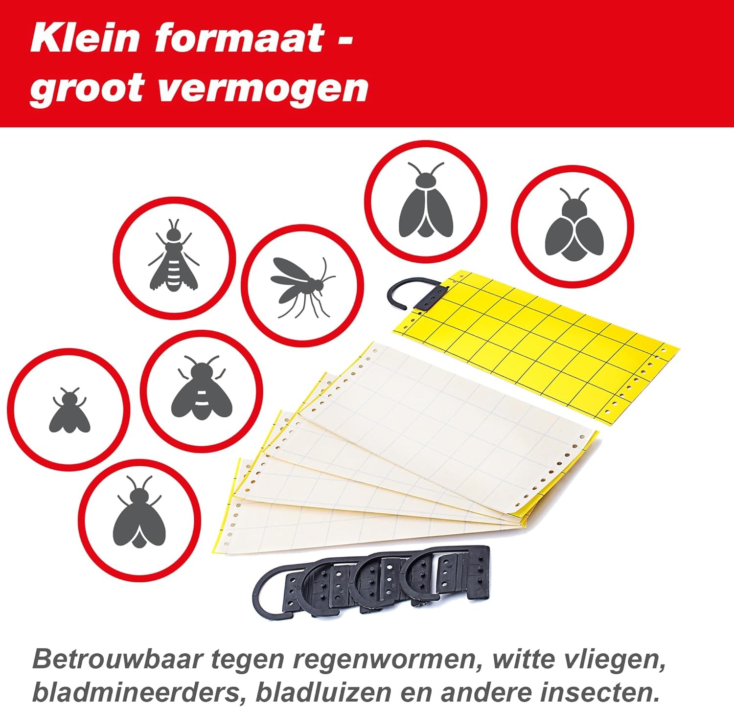 Heeft u last van veel vliegen en kunt u het niet meer aan met een citroentje in wat water of zoete vallen? Gebruik dan deze gele vliegenstrip van Swissinno Solutions voor direct resultaat. De gele kleur lokt de vliegen naar de strip en ze blijven dan plakken. Simpel, maar effectief.