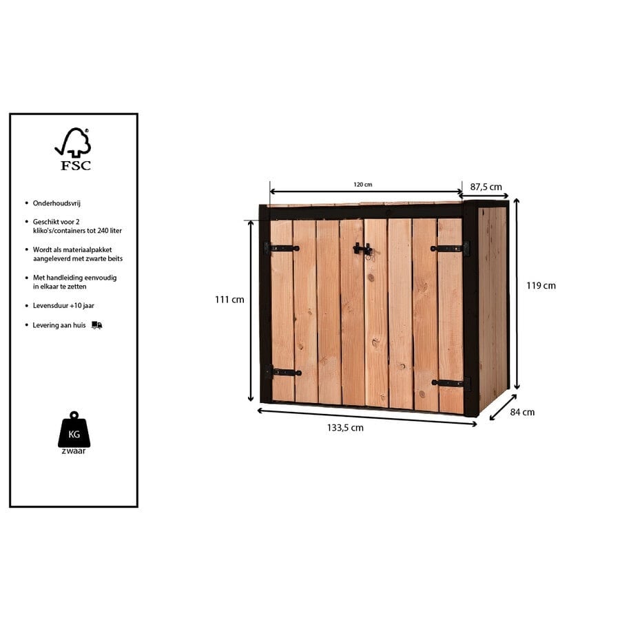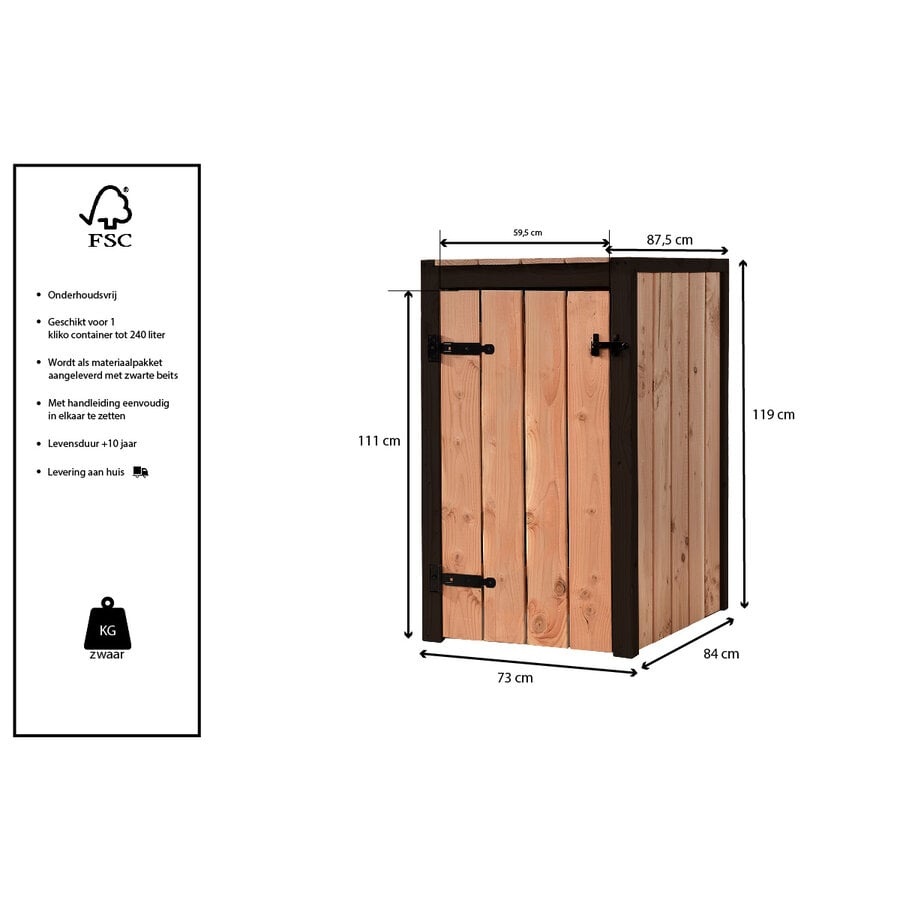 Of u de Containerombouw Suze nu vrijstaand plaatst of tegen een wand, deze praktische en elegante oplossing combineert functionaliteit met esthetiek, en houdt uw kliko netjes uit het zicht, zelfs in de kleinste hoek van de tuin.