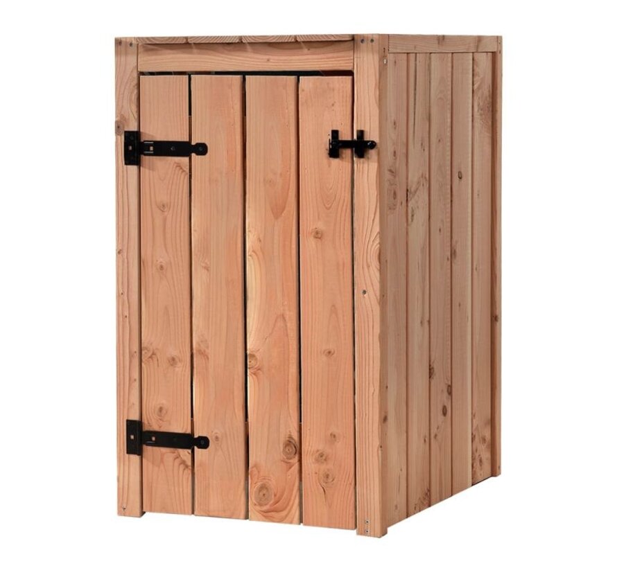 Wil je die lelijke container in je tuin of op je oprit liever uit het zicht hebben? Met onze stijlvolle containerkast is dat probleem verleden tijd! Gemaakt van duurzaam Douglas hout en afgewerkt met stevig gegalvaniseerd hang- en sluitwerk, zorgt deze ombouw ervoor dat je vuilcontainer netjes en geordend blijft staan. Dankzij de hoogwaardige materialen geniet je minimaal 10 tot 15 jaar van een onderhoudsvrije en mooie oplossing. Deze kliko ombouw is perfect voor één, twee of drie kliko's van maximaal 240 liter en heeft een handige deur aan de voorkant, zodat je de container er moeiteloos in en uit kunt halen. De klep aan de bovenkant maakt het bovendien supergemakkelijk om afval weg te gooien zonder de container eruit te hoeven halen.
