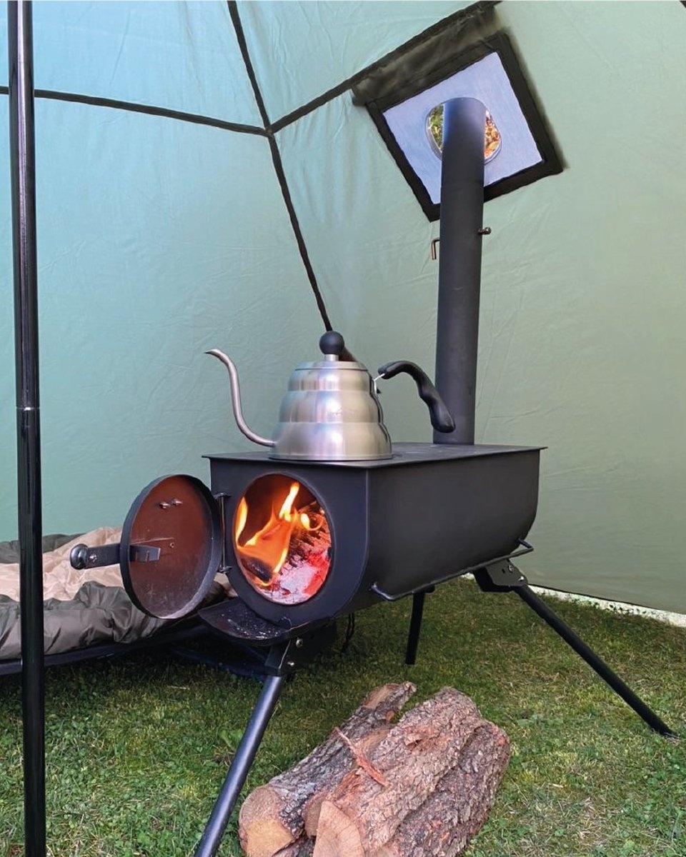 De Wood Stove houtkachel Veluwe van Meuwissen Agro is ideaal voor op de camping of in de tent. Deze kleine kachel is eenvoudig mee te nemen en draagbaar. De poten kunnen worden ingeklapt en het rookkanaal kan gedemonteerd worden om snel weer naar een andere plek te gaan. Deze Wood Stove mag alleen buiten of in een daar speciaal voor geschikte tent gebruikt worden.