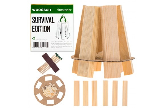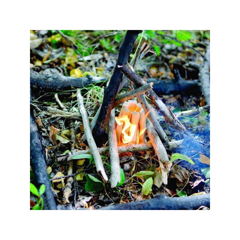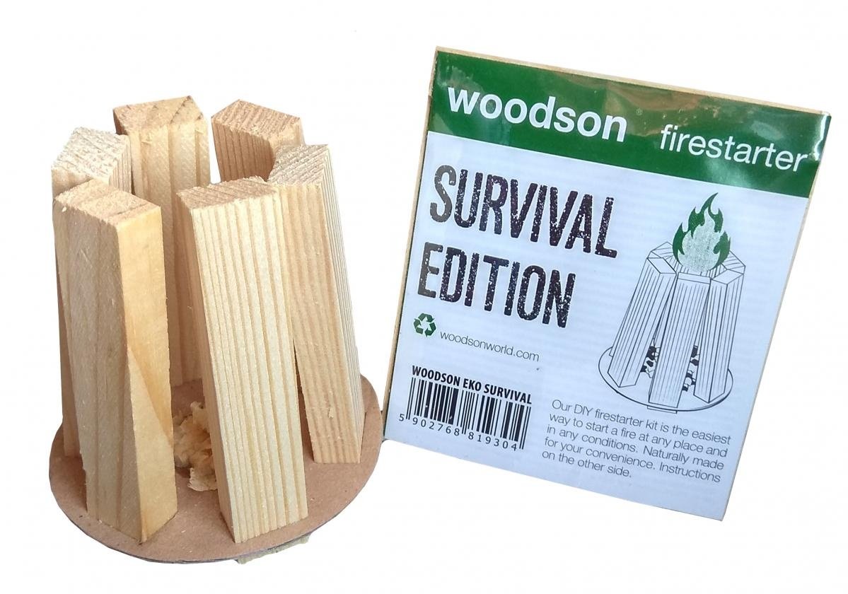 Het Woodson Eco-Fire Survival 1-pack is gemaakt van gerecycled grenenhout, zaagsel, oud papier en plantaardige stearine. Met dit aanmaakhout kun je gemakkelijk kampvuren, barbecues en kachels aansteken. Het modulaire ontwerp van het Survival eco kampvuur neemt weinig ruimte in beslag en kan onder bijna alle omstandigheden worden gebruikt.